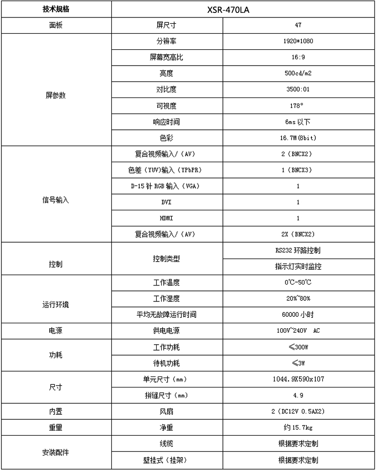 新視銳47寸超窄邊4.9mm拼縫液晶拼接單元產品參數: